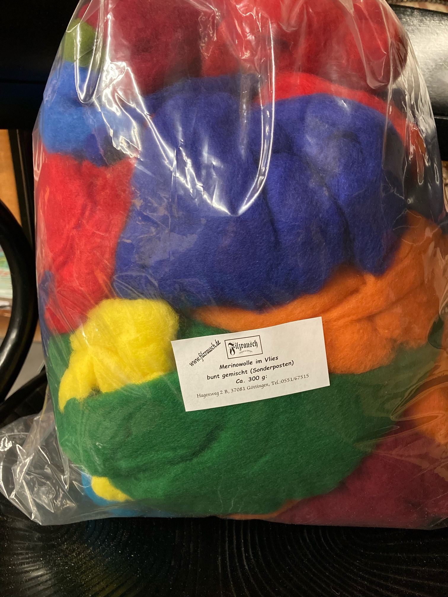 Customer evaluation for "Sonderposten 65,51€ / kg ca.300 g Merinowolle im Vlies bunte Reste 19mic -20%"