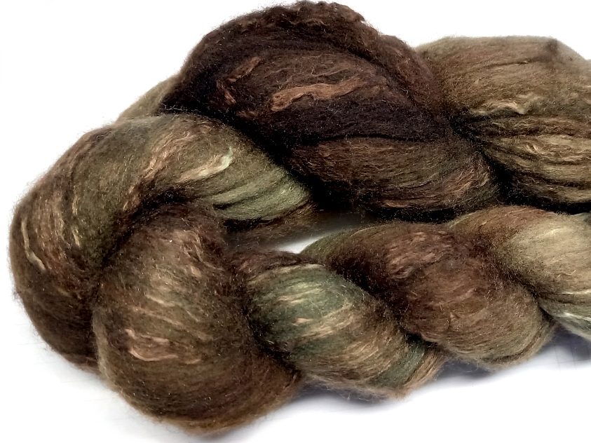 Merinowolle 16mic/Seide 66%/34% (handgefärbt) - wacholdergrün traum 0108 Kammzug